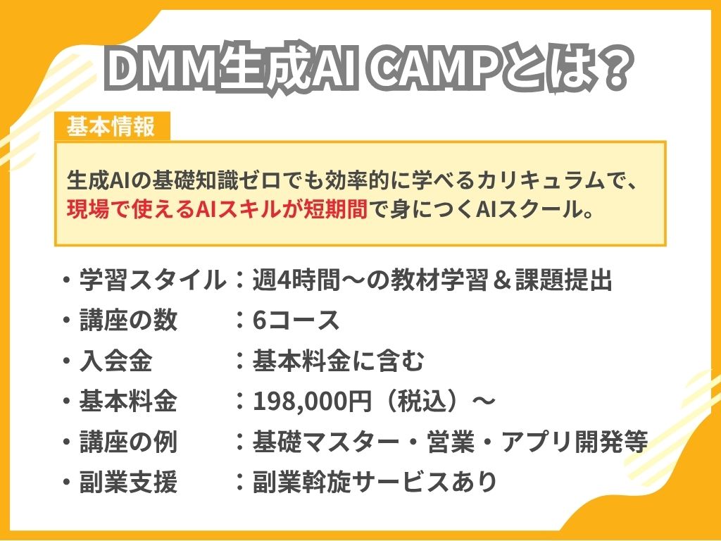 DMM生成AI CAMPとは、現場で使えるAIスキルが短期間で身につくAIスクールです。